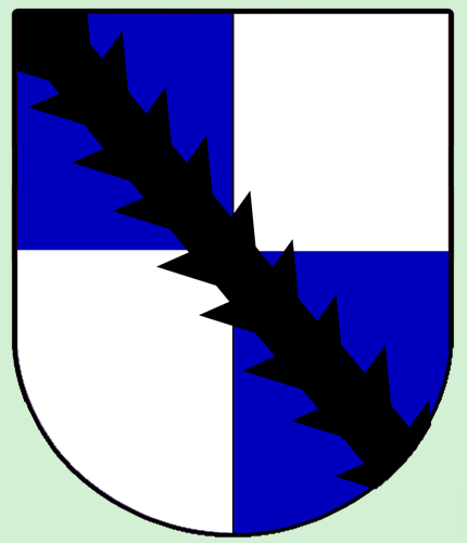 Das Wappen ist geviert, I und IV in Blau, II und III in Silber. Der Schild ist mit einem schwarzen Schrägrechtsbalken engrailed belegt.
